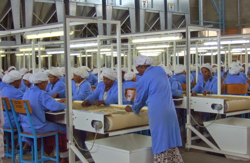 Today the Oromia Coffee Farmers Cooperative Union is housed in an impressive new compound within the same countryside outside Addis where Tadesse grew up as a boy and he is the General Manager of OCFCU. The compound includes a high tech coffee processing factory, and three large coffee storage complexes and employment for over 1500 local people. The site facilities for the employees are excellent with clean and spacious restrooms for men and women, a large canteen with windows overlooking the hills beyond and an onsite clinic with medical staff. Tadesse is proud of the fact that this facility was constructed without any bank loans but from their own Cooperative resources.
