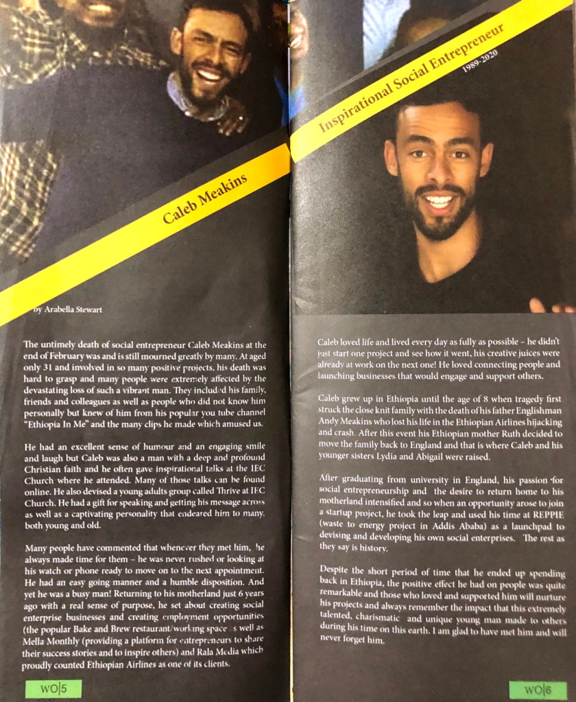 The untimely death of social entrepreneur Caleb Meakins at the end of February was and is still mourned greatly by many. At aged only 31 and involved in so many positive projects, his death was hard to grasp and many people were extremely affected by the devastating loss of such a vibrant man. They included his family, friends and colleagues as well as people who did not know him personally but knew of him from his popular you tube channel “Ethiopia In Me” and the many clips he made which amused us.
