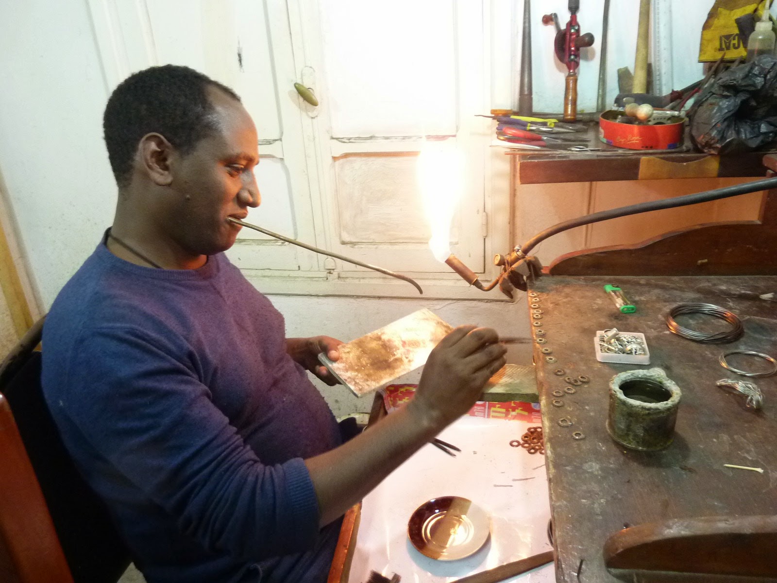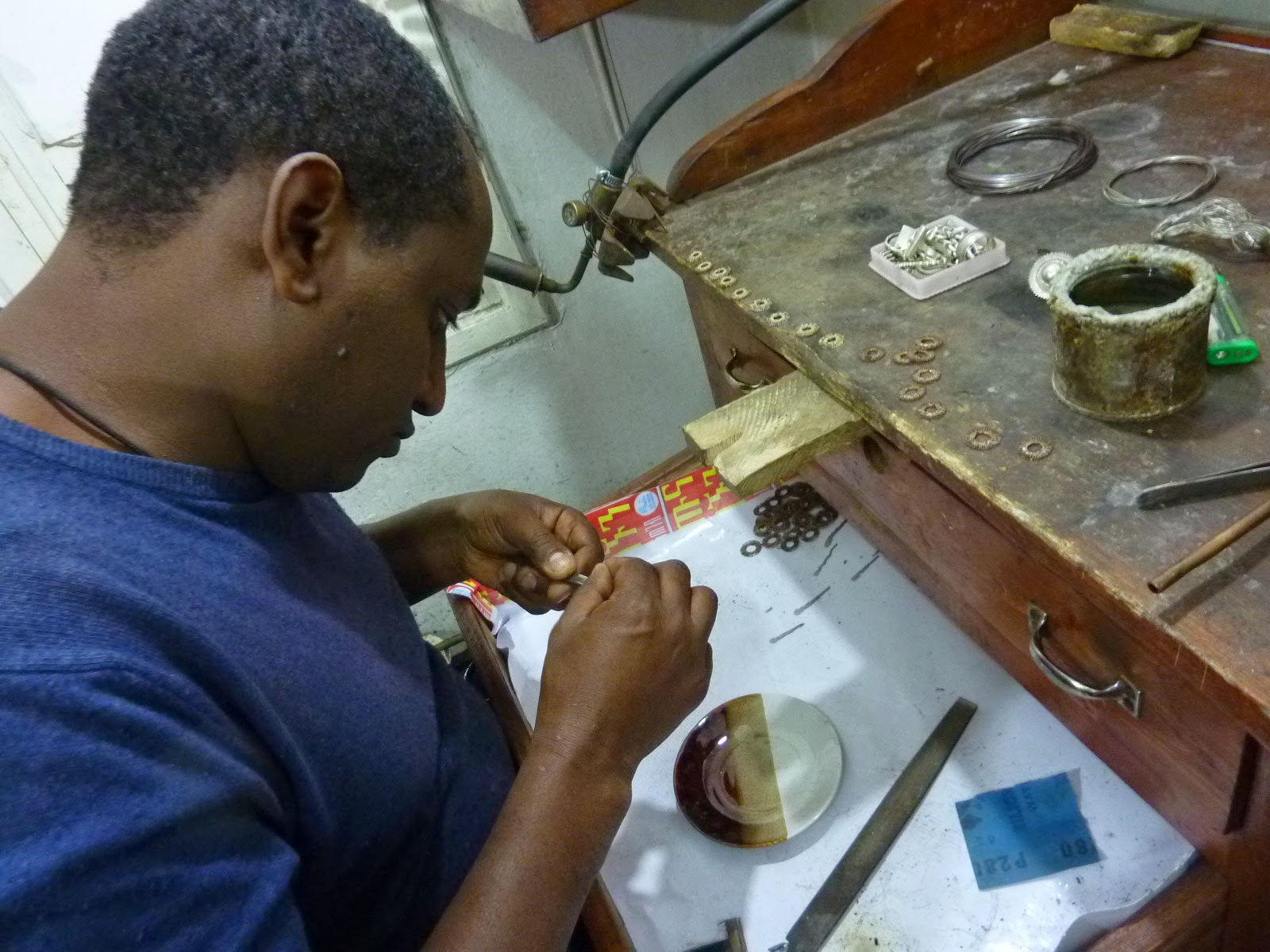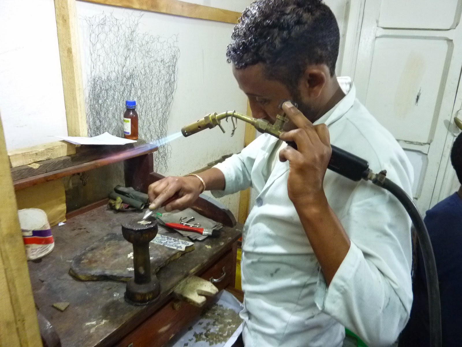 My particular thanks go to new designer/silversmith Mulugeta Behailu who allowed me into his Piassa workshop to observe and photograph artisans performing this delicate and intricate work. His shop specialising in beautiful silver items is located in Haya Hulet in front of St. Gabriel Hospital.